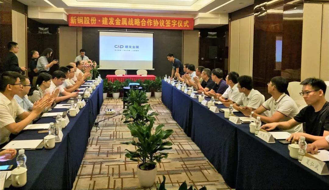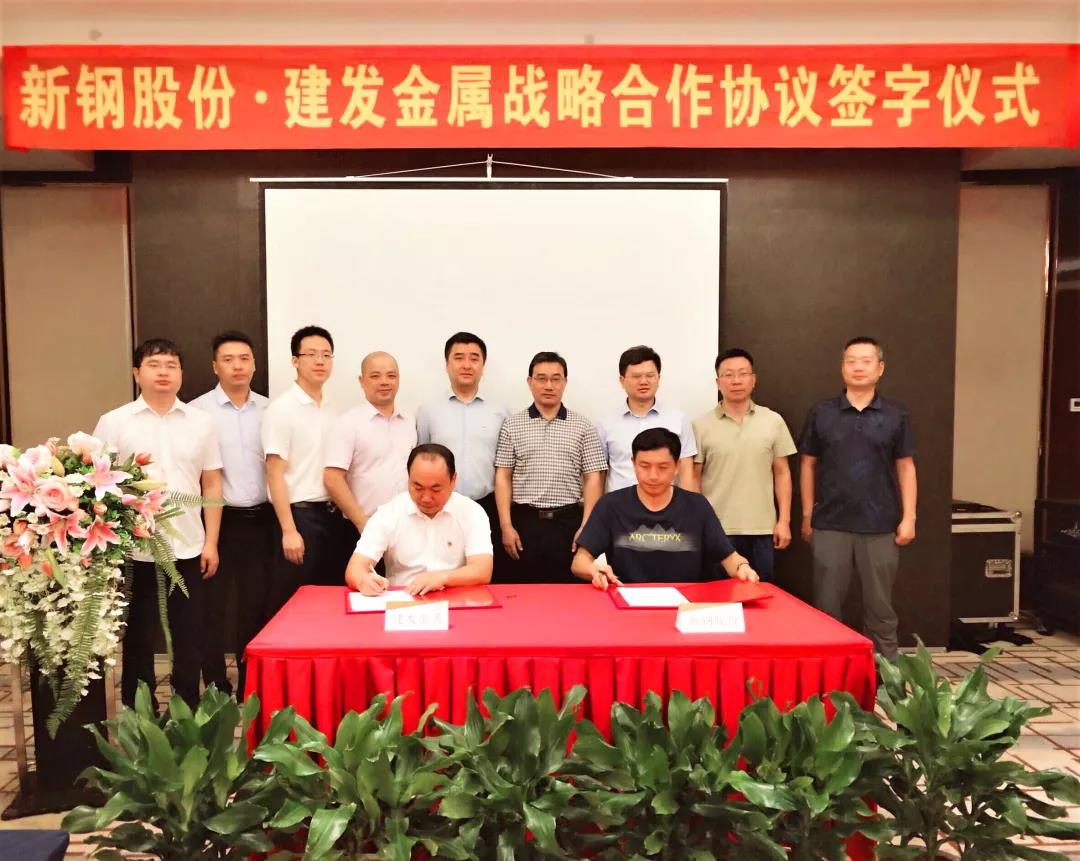 (新鋼股份肖忠東、建發(fā)金屬?gòu)埱迦A分別代表雙方簽訂戰(zhàn)略合作協(xié)議)