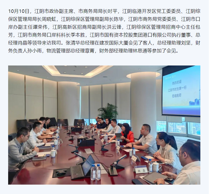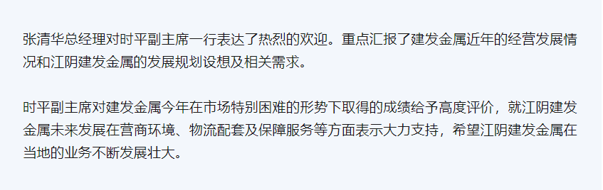 江陰市政協(xié)副主席、商務(wù)局局長時平等一行來訪建發(fā)金屬
